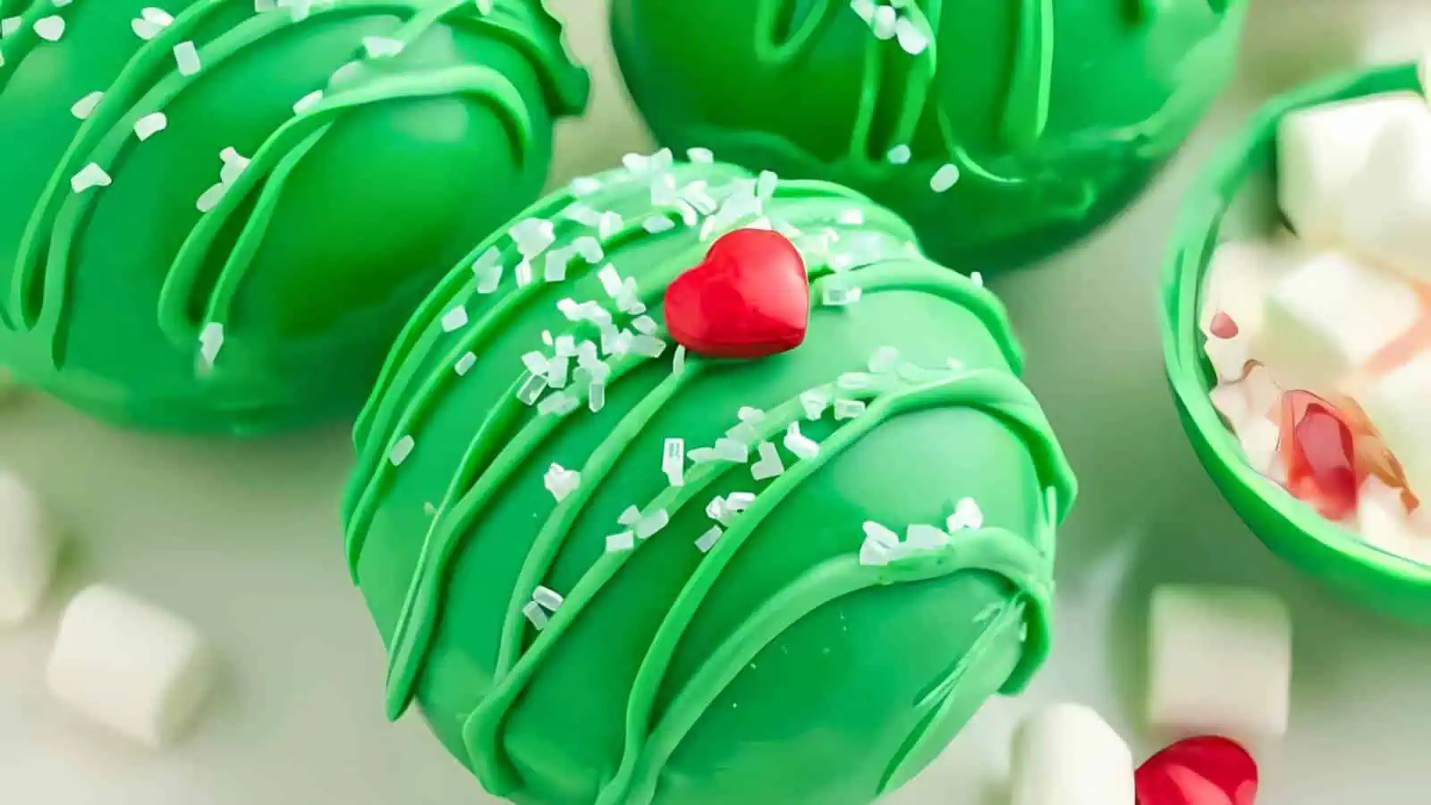 Grinch Hot Cocoa Bombs with Mini Marshmallows