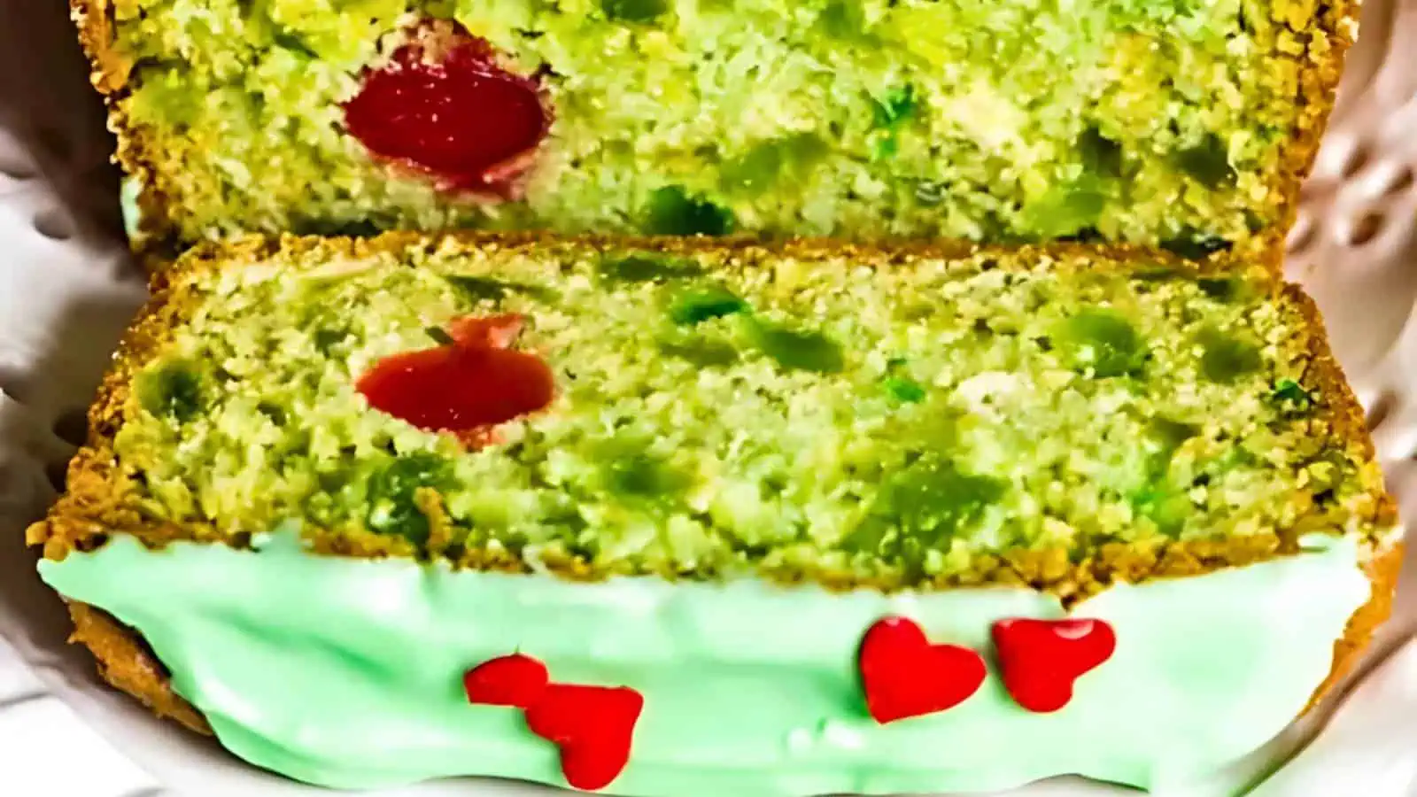 Grinch-inspired cherry bread is a fun twist on holiday baking, with green candied cherries, maraschino “hearts,” and a light powdered sugar glaze. This colorful bread is perfect for holiday breakfasts or dessert tables, adding extra cheer to your Grinch-themed desserts lineup.