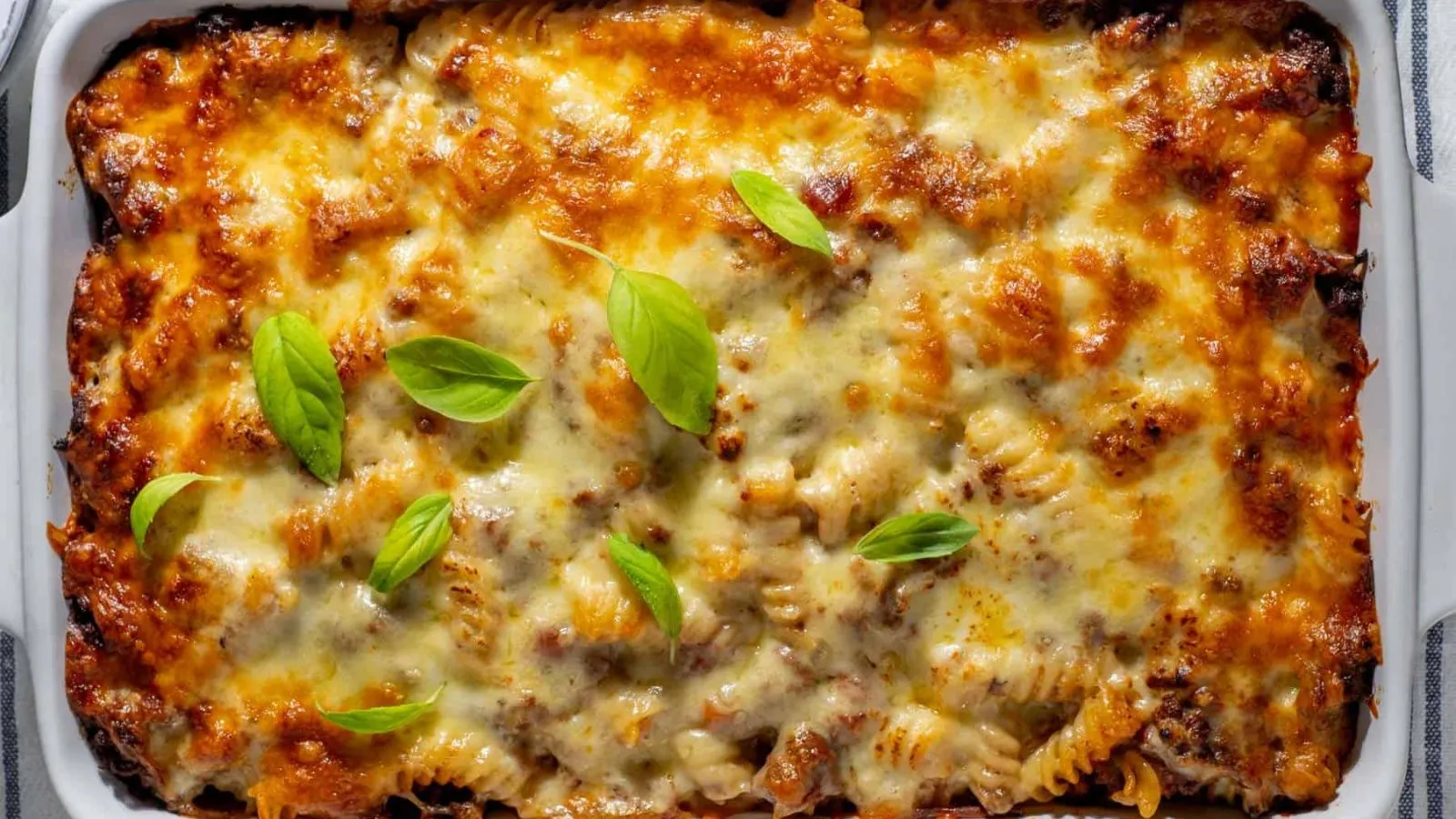If you're after something cheesy and baked that isn't stuffed in a tortilla, this pasta bake is the move. Itโs beefy comfort in a casserole dish.