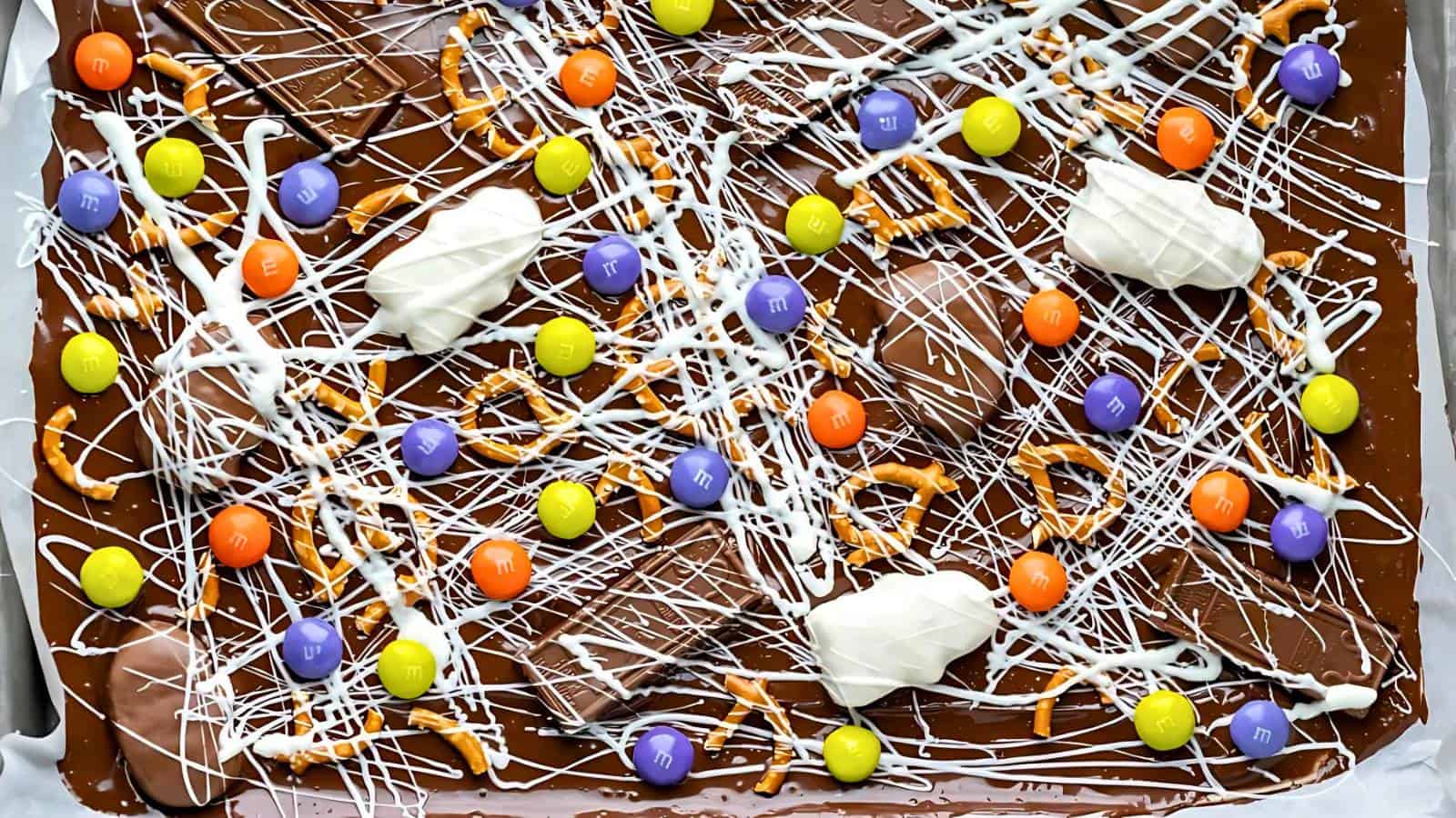 Reeseโs Pieces Pretzel Bark