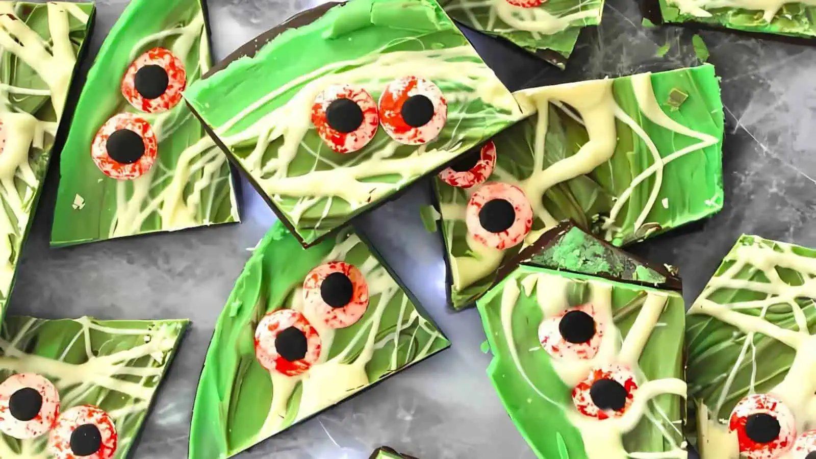 This green and spooky Halloween chocolate bark recipe is perfect for any party. Made with layers of dark and white chocolate, itโs finished with creepy candy eyes, making it an easy and fun choice for Halloween bark recipes.