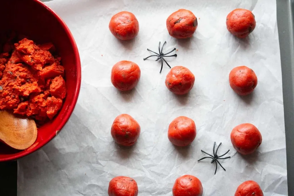 - Allow the mixer to combine the food coloring until all of the dough is orange.