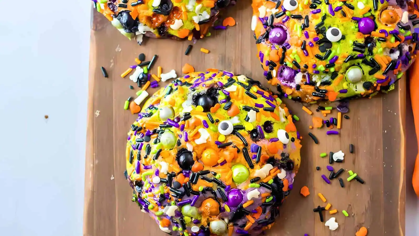 Monster Jello cookies are a bright and fun option for Halloween cookies. The colorful jello gives the cookies a fun look, and theyโre easy to shape into monster faces. These cookies are sure to bring smiles to any Halloween gathering!