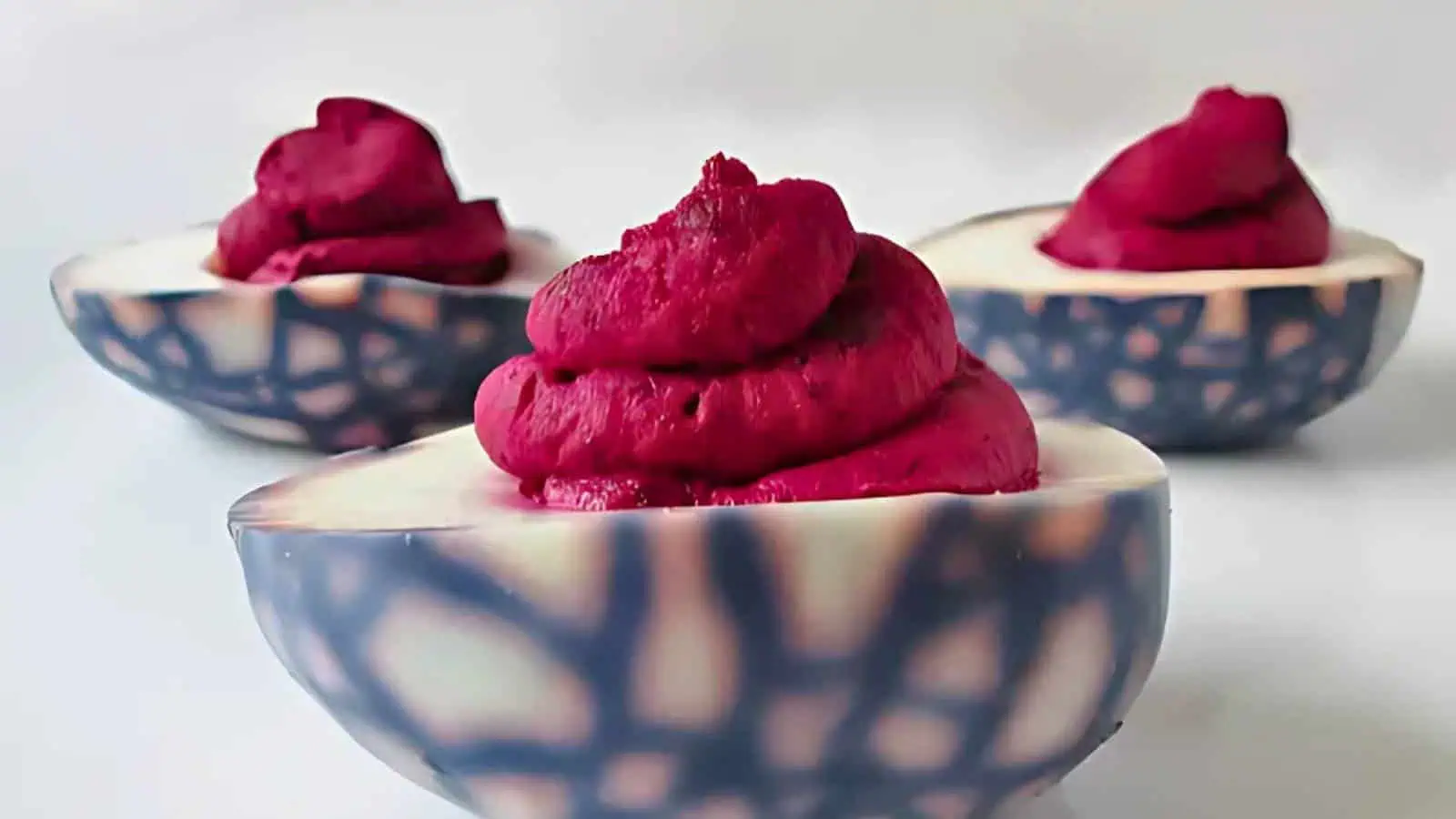 Deviled Raven Eggs pay homage to Poeโs classic tale and add a mysterious touch to your Halloween spread. With a striking black, spidery design on the outside and a surprising purple filling on the inside, these eggs are sure to catch everyoneโs eye. They belong on your list of Halloween deviled egg recipes, offering a fun and creative option that will intrigue your guests and spark conversation. Try them out for a unique appetizer that adds some spooky flair to your gathering!