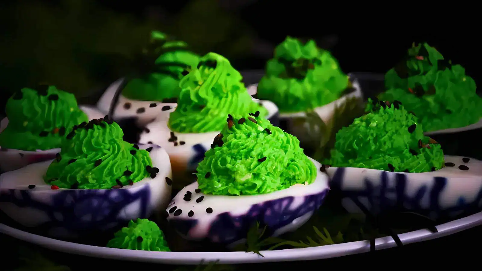 Halloween Deviled Eggs with Avocado and Wasabi bring a unique twist to the traditional recipe. Their creamy green filling is not only spooky but also healthy, making them a great addition to your lineup of Halloween deviled egg recipes. Plus, with no artificial colors, you can feel good about serving these to your guests. Theyโre sure to impress everyone at your party!
