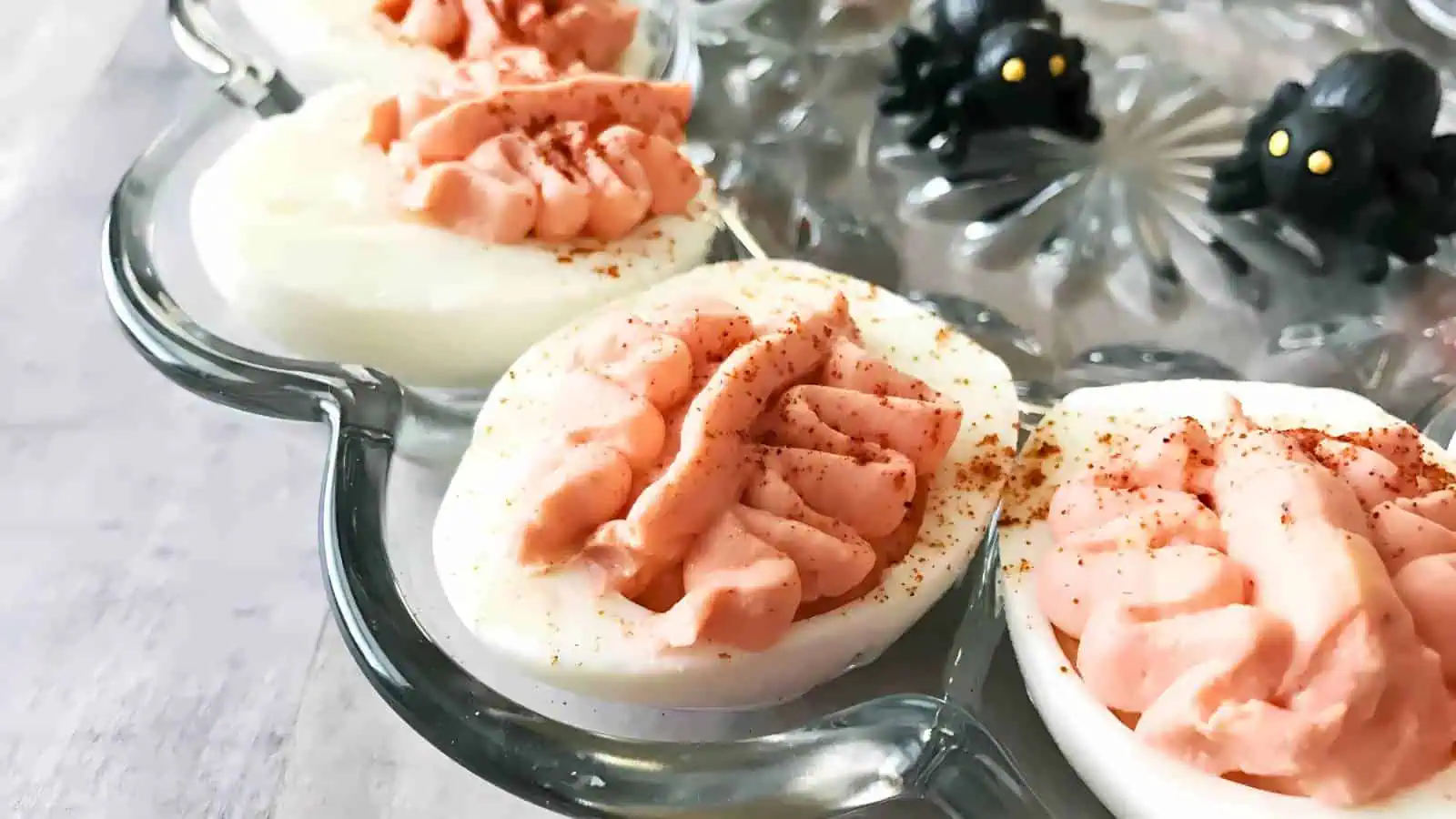 Dress up your appetizers with these Brain Deviled Eggs, designed to look like little brains for Halloween. Not only do they look fun, but they also fit perfectly into the Halloween deviled egg recipes theme, making them a light and tasty treat everyone will want to try.