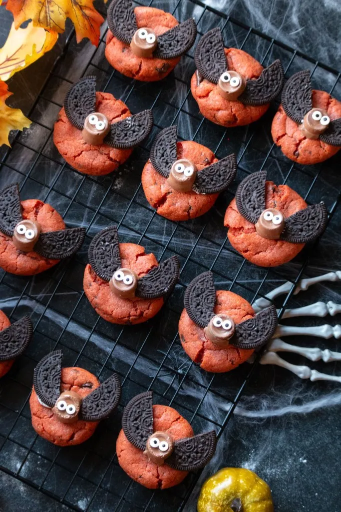 Halloween Bat Cookies If you're looking for a “Batty” Halloween potluck recipe idea, then put this at the top of your list! It takes a basic sugar cookie, Oreo cookie, and Rolo! Chewy caramel added to the mix? Yes please!