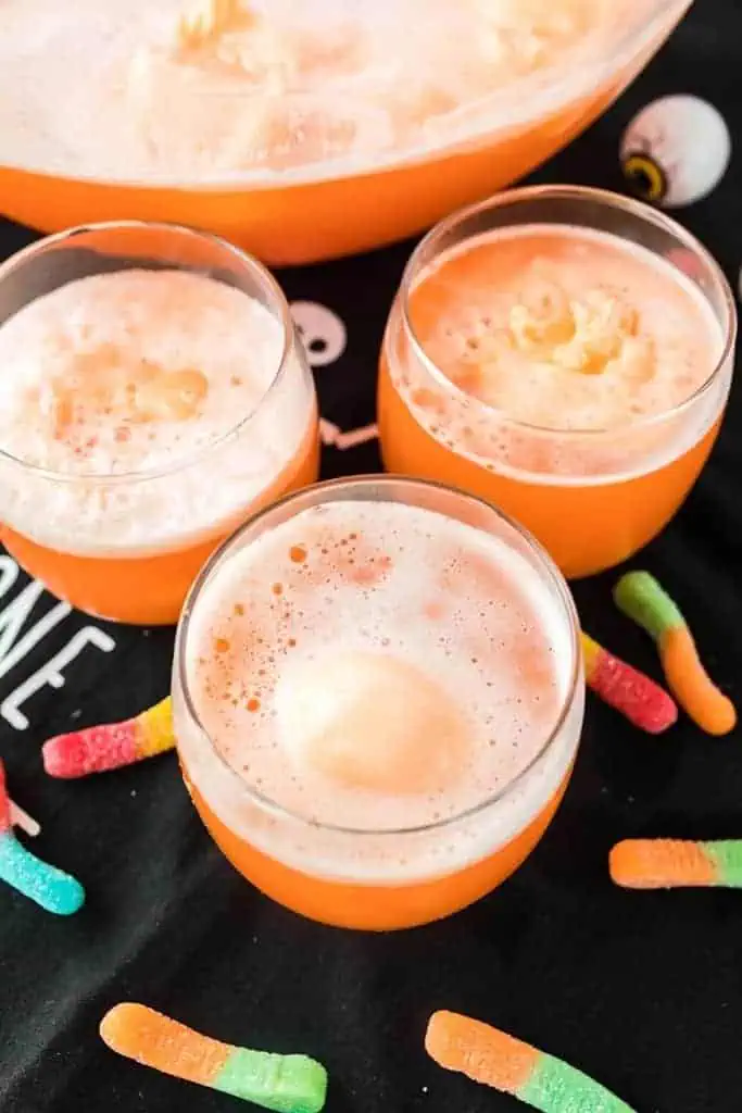 Bubbly Party Punch This three-ingredient orange Halloween party punch is always a popular party drink. Make in minutes and serve with sherbet. Kids love to see how the party punch bubbles up. Add some fun Halloween treats to make it even spookier.