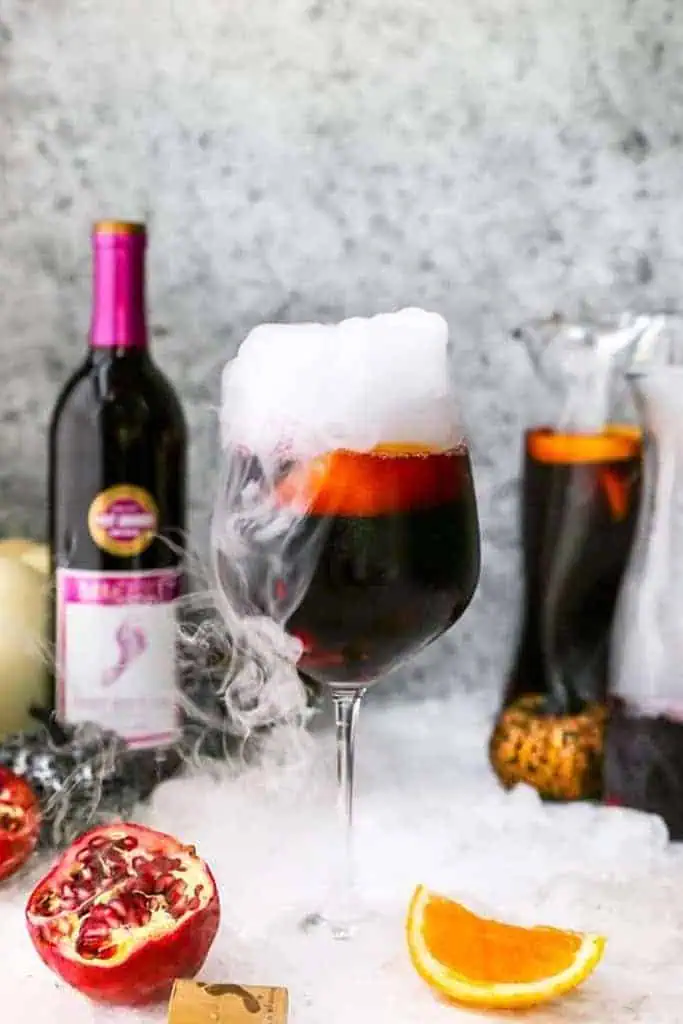 Halloween Sangria Forget the candy, this year Iโm all about a dark, spooky and delicious Sangria Recipe! Made with a Red wine blend, tart dark cherry juice, rich pomegranate juice and crisp orange liqueur, this sangria is sweet, full-bodied and to-die-for!