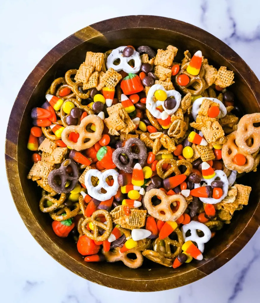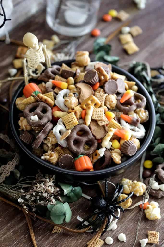 This Halloween Party Snack Mix is a ghoulishly delicious balance of sweet and salty favorites. It’s an easy recipe that’s great for any costume party, movie night, or pumpkin carving get-together.