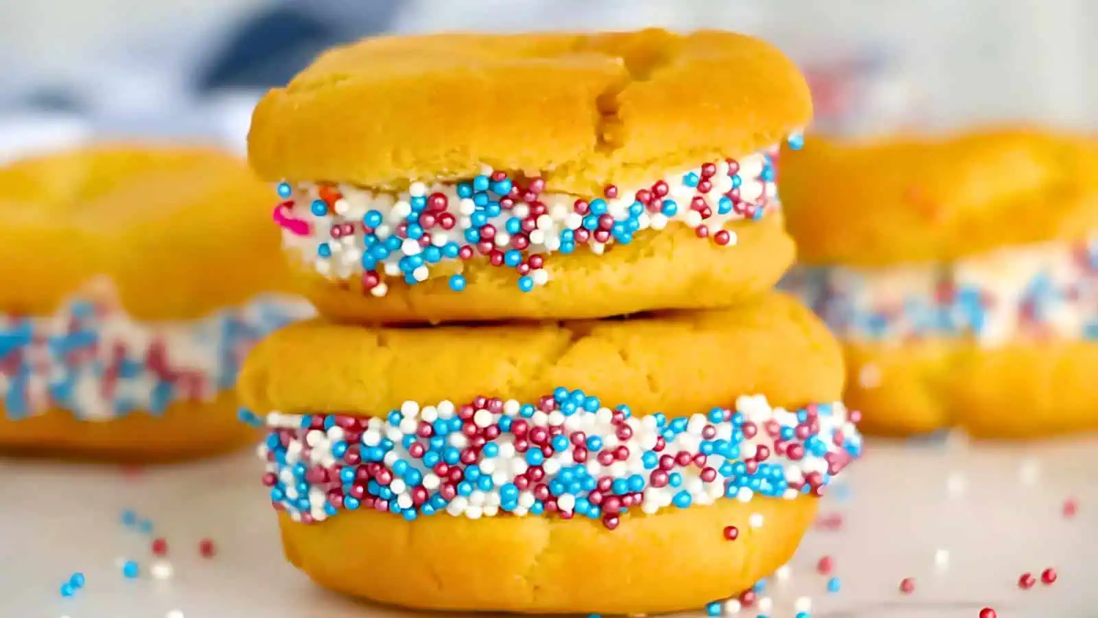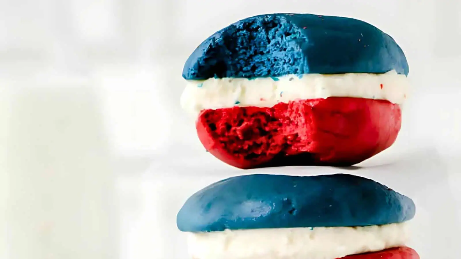 These red, white, and blue whoopie pies are a festive way to celebrate any patriotic holiday. A creative addition to hand pie recipes that bring color and fun to the dessert table.