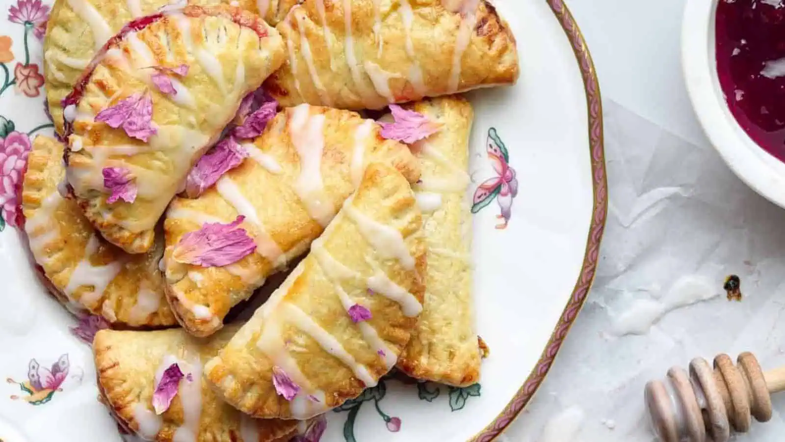 These mini pies are filled with sweet strawberry jam and topped with a delicate rose glaze. A perfect addition to hand pie recipes for brunch, picnics, or special occasions.