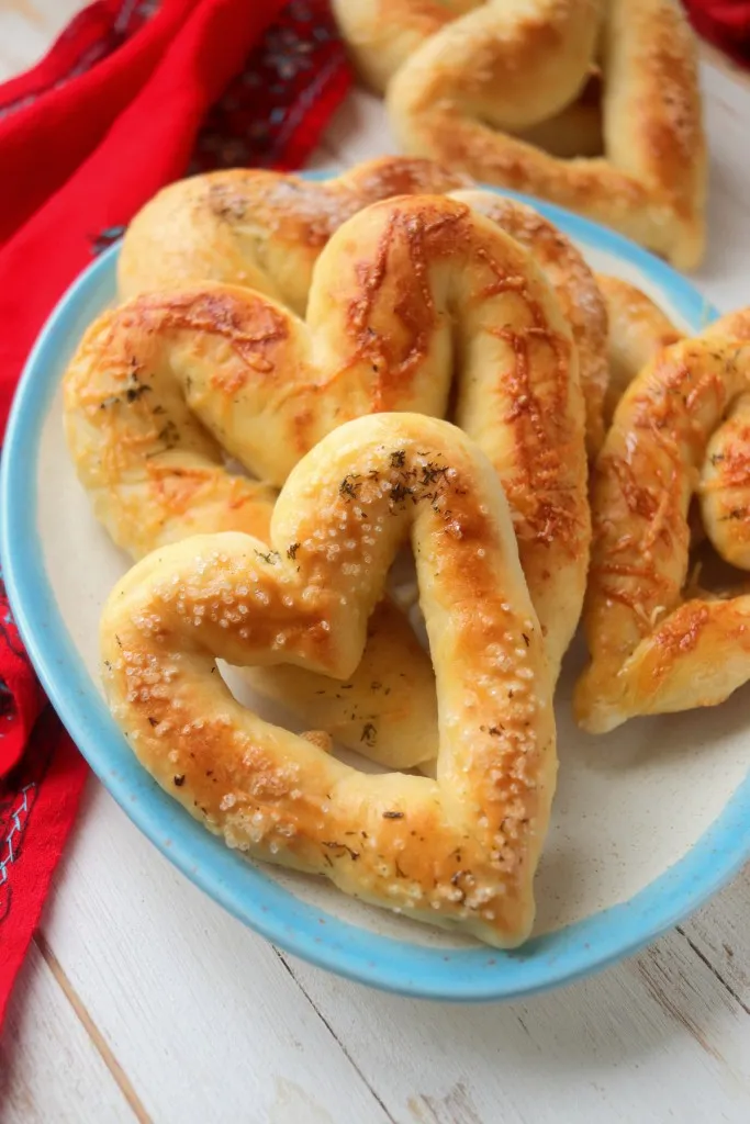 Breadsticks go great with many lunch and dinner dishes. These heart shaped breadsticks will be delicious with a bowl of vegetable soup or chilli. They also pair well with pasta and saucy chicken dishes.