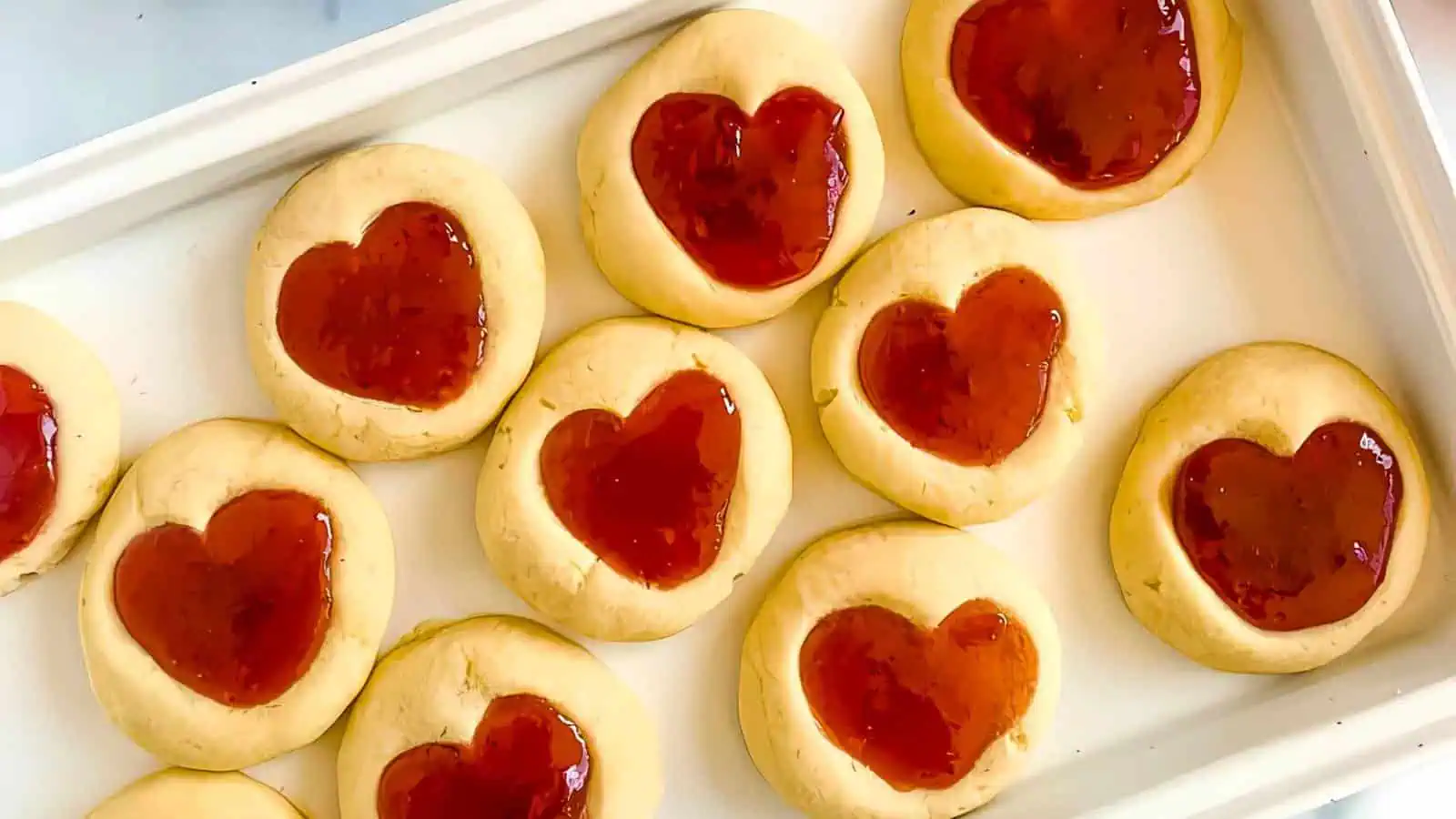 These heart-shaped jam cookies have a crisp, buttery base and a sweet strawberry center. Theyโre a fun and easy way to add a little love to your baking, whether for Valentineโs Day or an afternoon snack. Heart-shaped recipes like this are simple to make but always impressive. Serve them with tea or wrap them up as gifts!