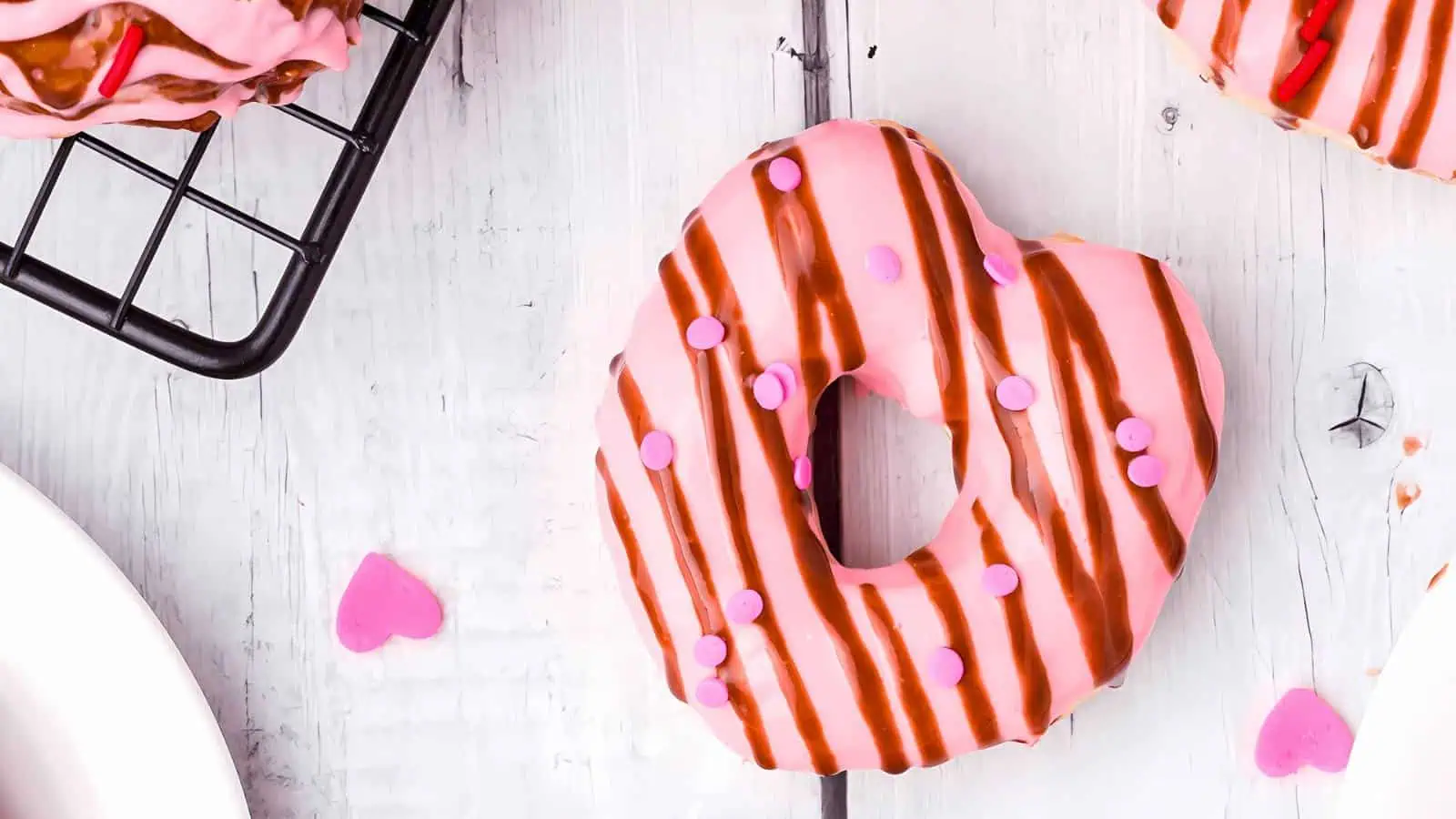 These heart-shaped donuts are crisp on the outside and soft on the inside, all without deep frying. With a coating of chocolate or strawberry icing, theyโre perfect for a quick and fun Valentineโs treat. Heart-shaped recipes like this make homemade donuts feel extra festive. Add sprinkles for the finishing touch!