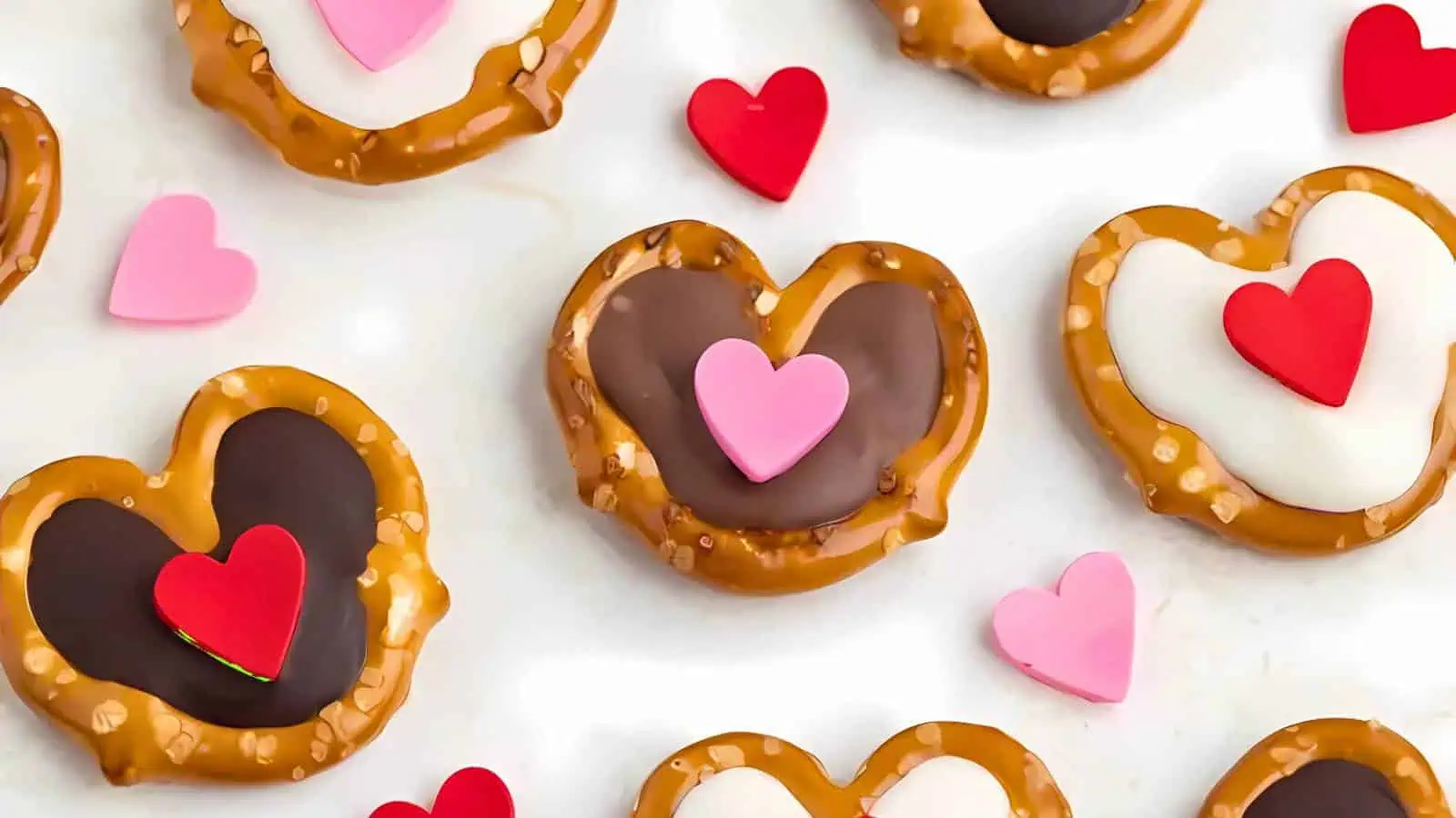 These chocolate-dipped heart pretzels are the perfect mix of salty and sweet. Topped with sprinkles, theyโre an easy homemade gift or party snack. Heart-shaped recipes like this prove that even simple treats can feel special. Make a batch and share with friends!