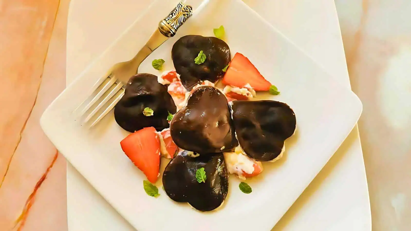 Chocolate ravioli may not be traditional, but itโs definitely a showstopper. Filled with a creamy mascarpone and pear mixture, these heart-shaped recipes take homemade pasta to a whole new level. Whether itโs for Valentineโs Day or a romantic dinner, this dessert pasta is as impressive as it is delicious. Serve it with a dusting of cocoa or fresh berries!