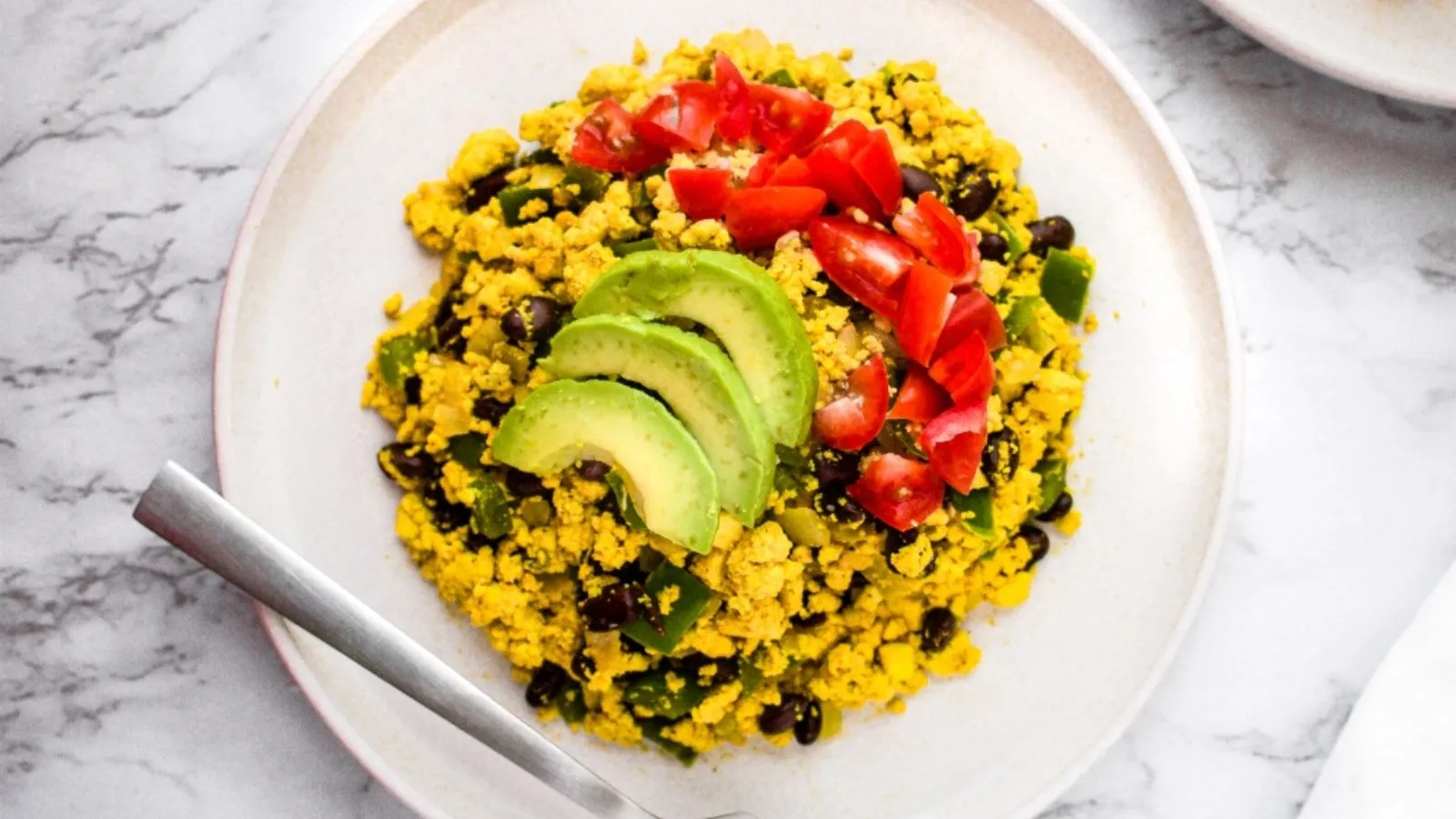 No eggs neededโthis tofu scramble is spiced up and fiber-filled thanks to black beans and veggies. Serve it in a bowl or a burrito, depending on how awake you are.