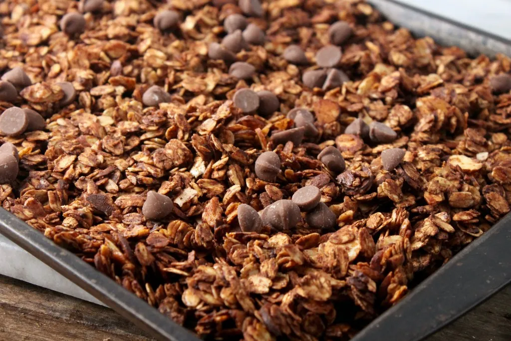 - Allow the granola to cool completely before stirring the chocolate chips into the mixture and storing it in your container. If you donโt, the chocolate chips will melt instead of having delicious, whole chocolate chips sprinkled throughout the granola mixture.