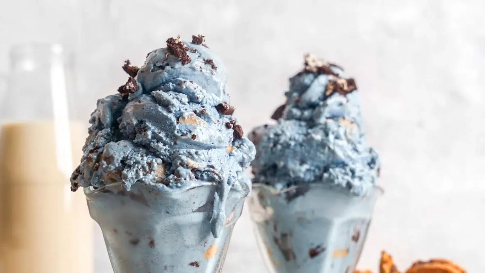 Packed with cookie chunks and a vibrant blue hue, this fun dessert is a hit with kids and adults alike. It's a playful option for homemade ice cream recipes that brings a smile with every scoop.
