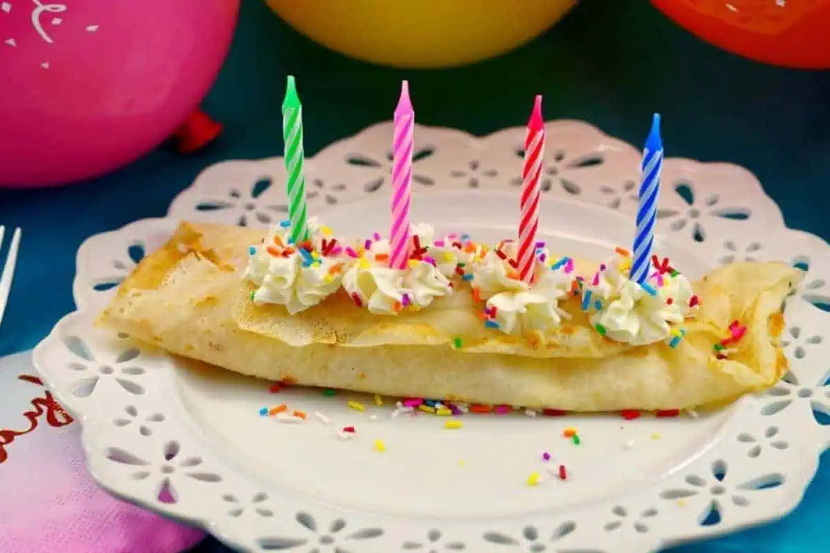 This crepes recipe has the best cake batter flavor. Serve with ice cream and plenty of sprinkles on a special birthday or anytime you could use a little cake and ice cream in your day.