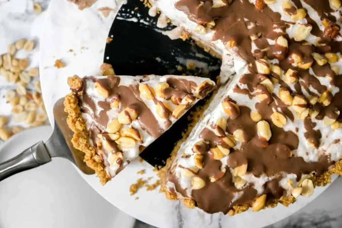 Make this peanut buster parfait pie with ice cream, caramel, peanuts and chocolate. It has the flavor of Dairy Queen in a convenient pie form that can feed a crowd. You will want to make this recipe on repeat for summer parties and potlucks.