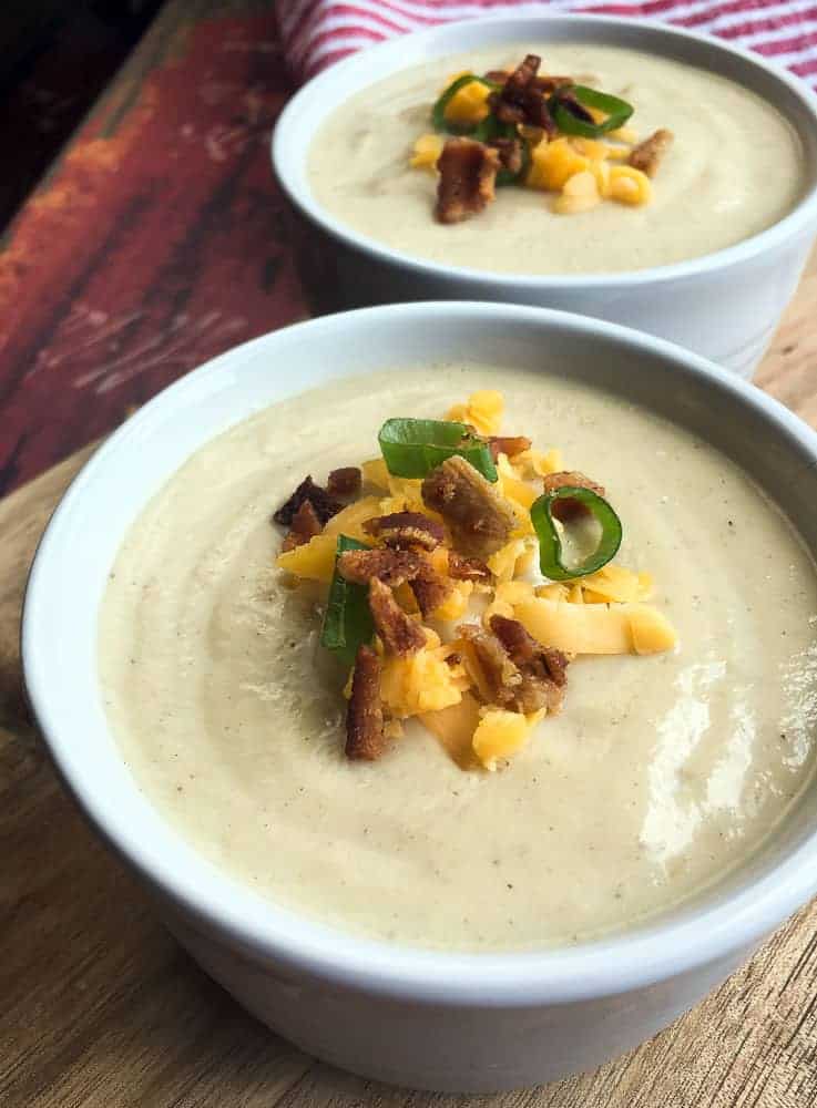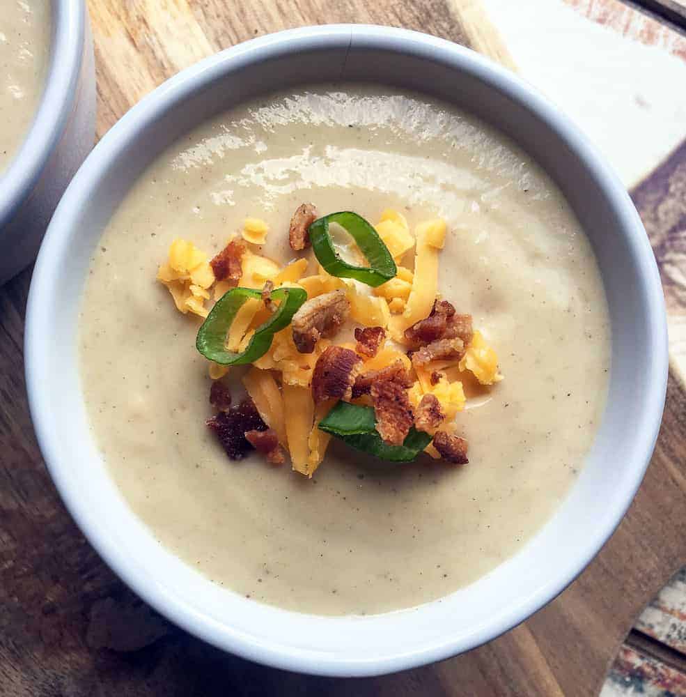 For a 1 cup serving of this Instant Pot Loaded Cauliflower soup, it's going to be 5 SmartPoints (For MyWW Blue) for a 1 cup serving. If you want to make this soup even lower in points, you can leave out the goat cheese!