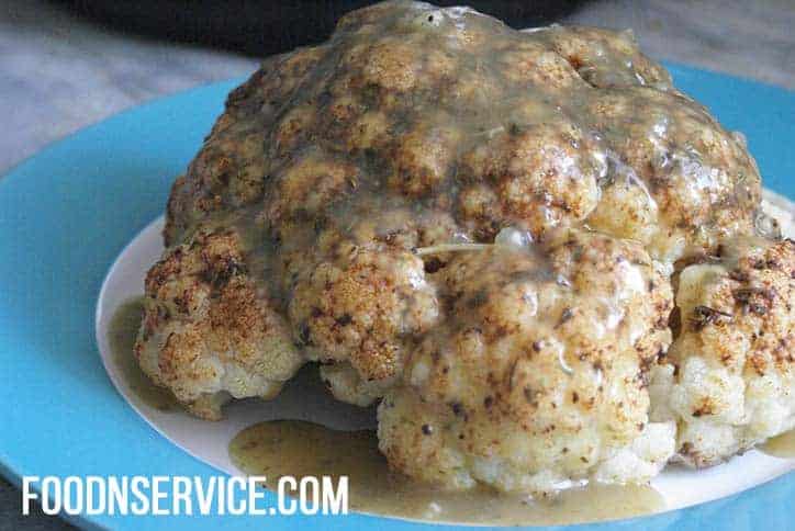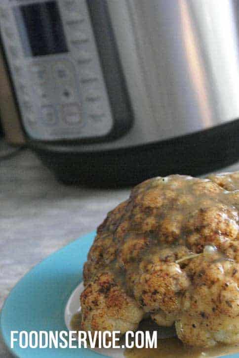 - Remove trivet from Instant Pot. Once cauliflower is removed, press the sauté button. Using a whisk, add in your cornstarch slurry and allow to thicken. Pour gravy over cauliflower before serving.