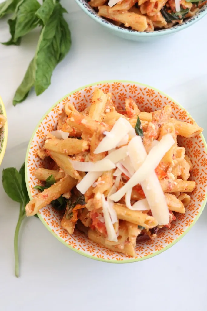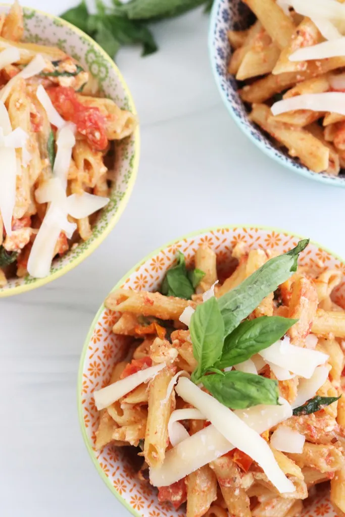Of course, You'll see other versions of an Instant Pot feta pasta recipe, and I'm totally sure they're so delicious! However, the original recipe calls for the block of feta & tomatoes to be baked. The baking of the feta & tomatoes creates a total different flavor profile.