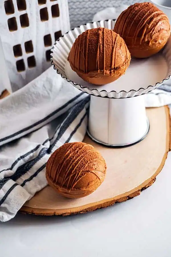 Instant Pot Hot Cocoa Bombs are sphere shaped chocolate shells filled with your favorite hot cocoa mix and marshmallows. When you add a hot cocoa bomb to a cup of warm milk, they burst open and make a creamy and delicious cup of hot cocoa…and gobs of marshmallows!