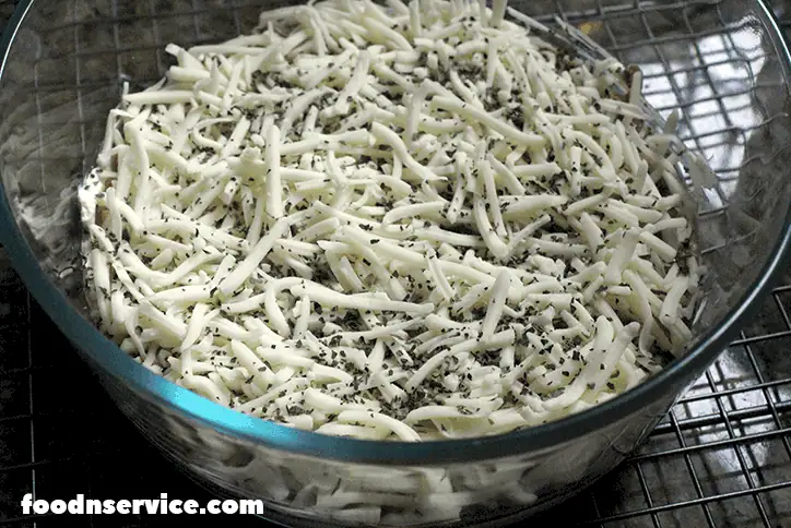 4. Sprinkle your mozzarella cheese around to create an even coating