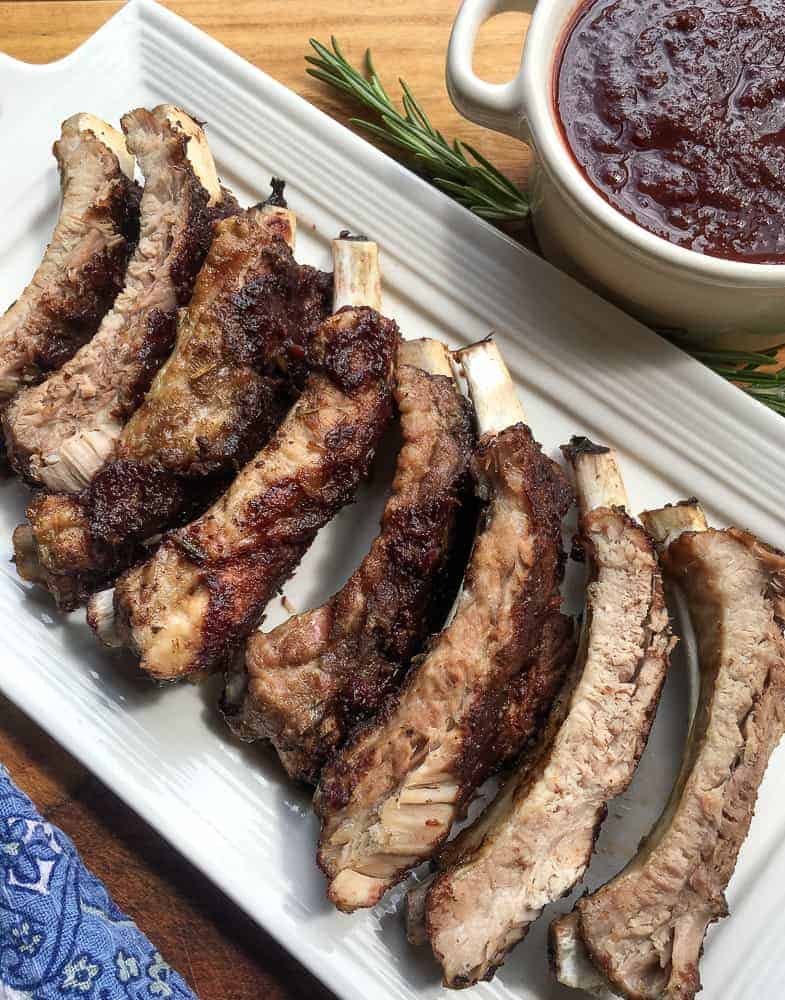 These quick and easy Instant Pot ribs are insanely tender and delicious. The cinnamon and rosemary in the dry rub complements the flavors in this savory Dark Cherry BBQ Sauce, but the flavors pair well with just about any barbeque sauce you prefer.