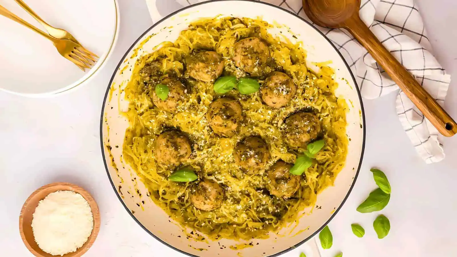Enjoy these delicious, juicy Pesto Chicken Meatballs that are not only super flavorful but are also a great, filling, keto and gluten-free dinner option. These meatballs, seasoned with Italian seasoning and basil pesto, use almond flour instead of breadcrumbs, and you would never know the difference.