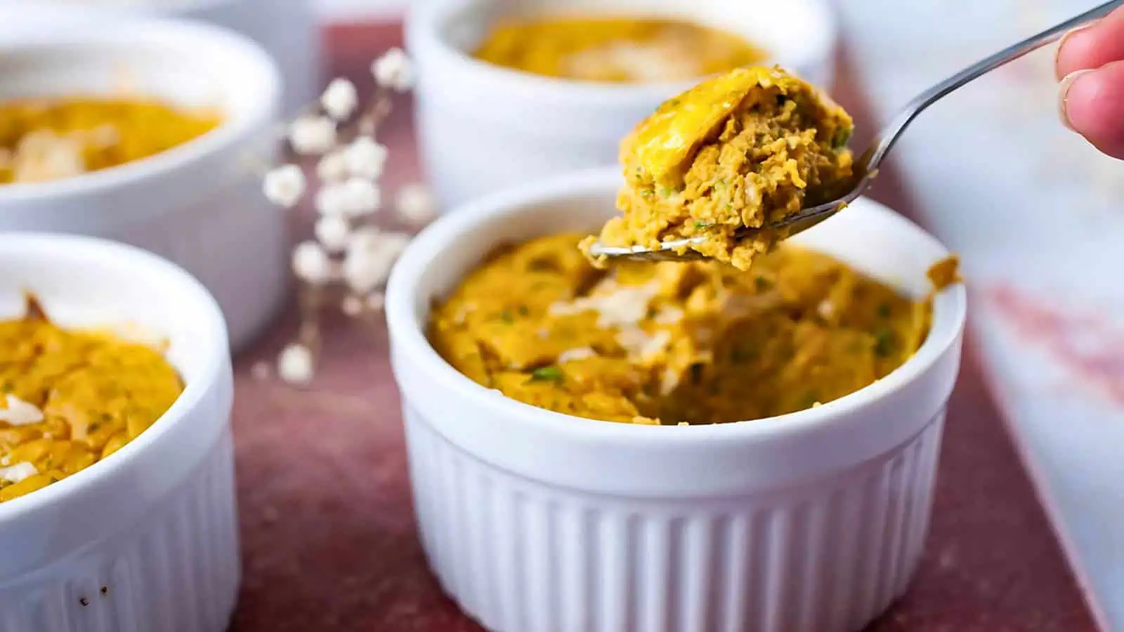These savory muffins are ideal for keto on the go. Packed with protein and a hint of garlic and parsley, theyโre a convenient breakfast or snack option. Their silky texture makes them a satisfying grab-and-go choice.