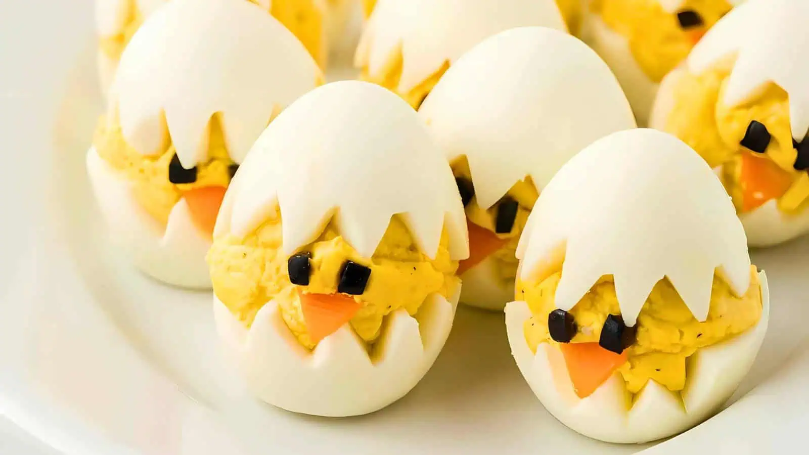 These playful deviled eggs are shaped like baby chicks, making them an adorable addition to any Easter table. With a creamy filling and simple decorations, they bring a fun twist to a classic appetizer. Theyโre a great choice for kids friendly Easter recipes, adding a little extra charm to the holiday spread.