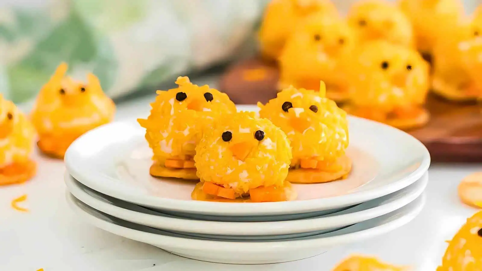 These mini cheese balls are shaped like baby chicks, making them a fun and tasty appetizer. With cream cheese, shredded cheddar, and simple decorations, theyโre easy to make and a great addition to kids friendly Easter recipes. Serve them with crackers or veggies for a festive snack.