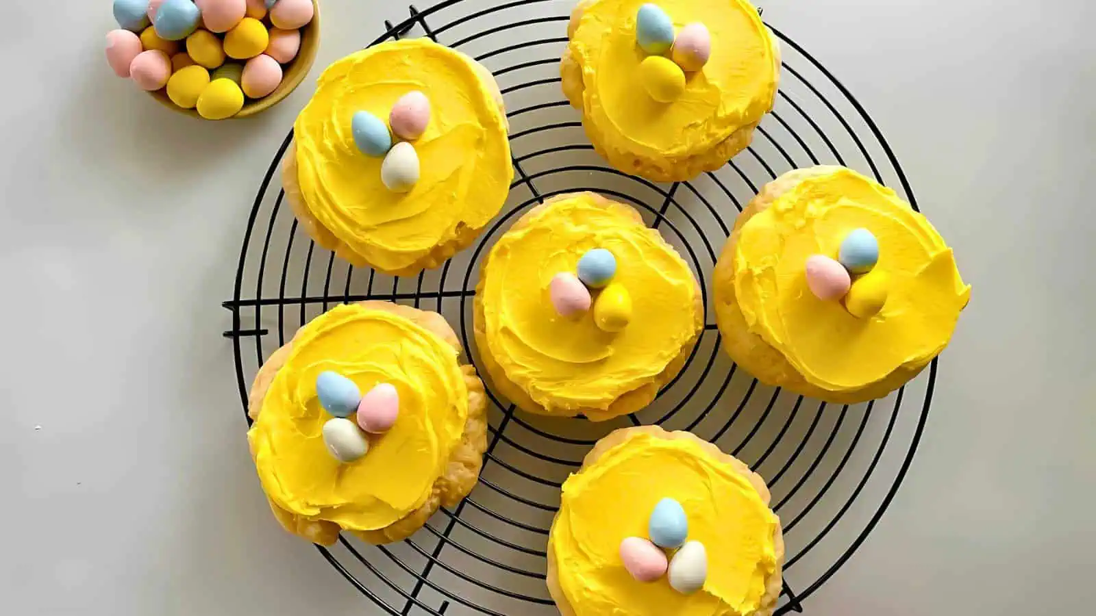 These soft sugar cookies are topped with buttercream frosting and mini chocolate eggs for a festive finish. With their bright colors and sweet flavor, theyโre a fun addition to kids friendly Easter recipes. Bake a batch for a holiday treat thatโs as pretty as it is delicious!