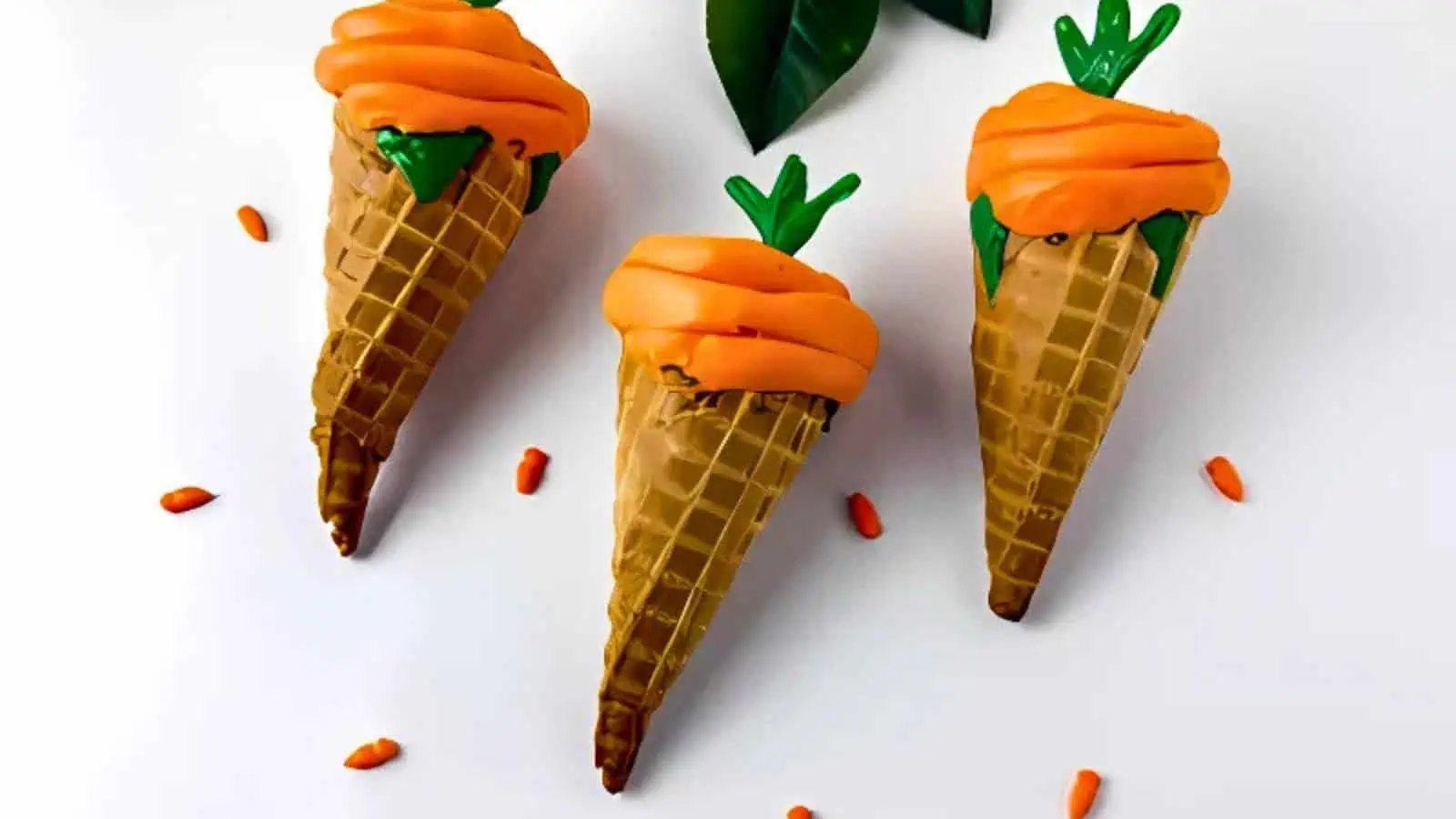 These cupcakes look just like carrots, complete with orange frosting and green candy tops! Baked inside waffle cones, theyโre a fun and mess-free treat that kids will love. A perfect choice for kids friendly Easter recipes, these cupcakes are almost too cute to eat.