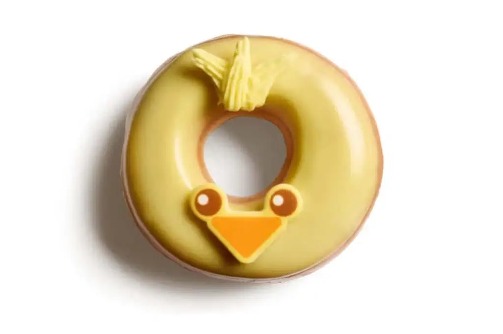 The Baby Chick doughnut stands out with its charming appearance. A bright yellow glaze coats the doughnut, with intricate detailing for eyes and beak, evoking smiles at first glance. Beneath its playful exterior is a classic doughnut soft and fluffy, offering a familiar comfort. This combination of adorability and taste makes it a popular choice in online food circles and a delightful grab for any Easter celebration.
