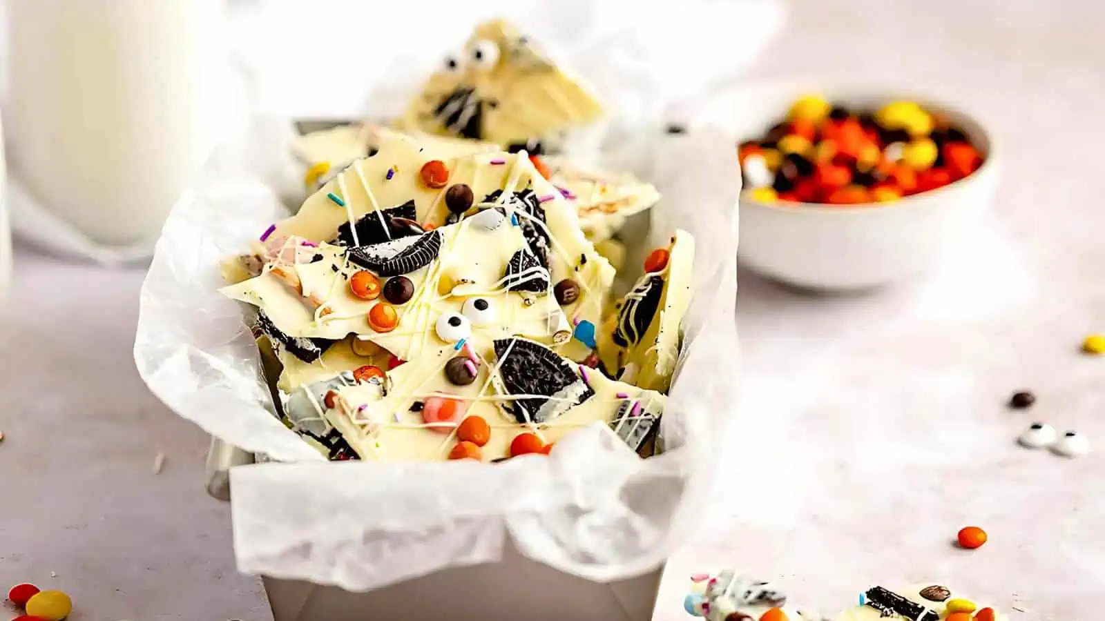 Spooky Halloween White Chocolate Candy Bark