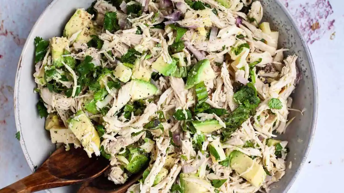 This version skips the mayo but still brings flavor with olive oil, herbs, and lime. Shallots and herbs keep it fresh, and the protein helps it stick with you longer. Serve it with crackers, wrap it in lettuce, or spoon it into a sandwich. It’s also great for anyone looking for lighter leftover rotisserie chicken recipes.
