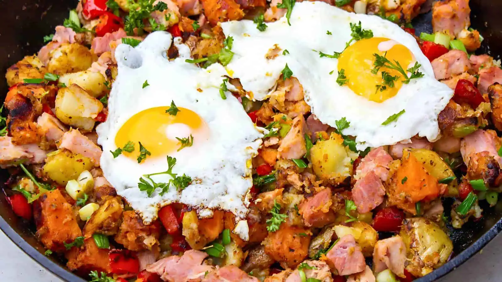 Easy Potato Skillet Breakfast with Ham. Photo credit: Two Kooks In The Kitchen.