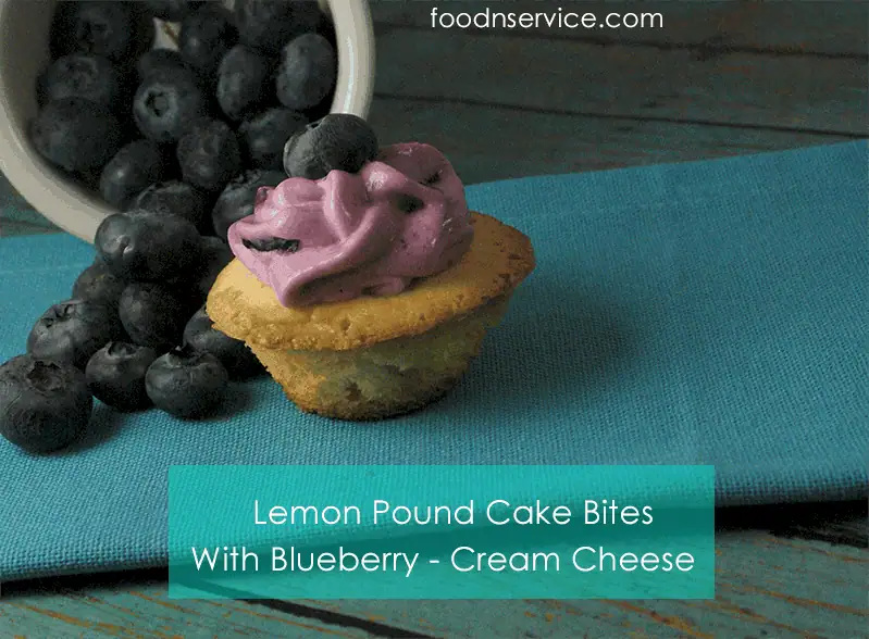 Lemon Pound Cake Bites With Blueberry Cream Cheese Frosting