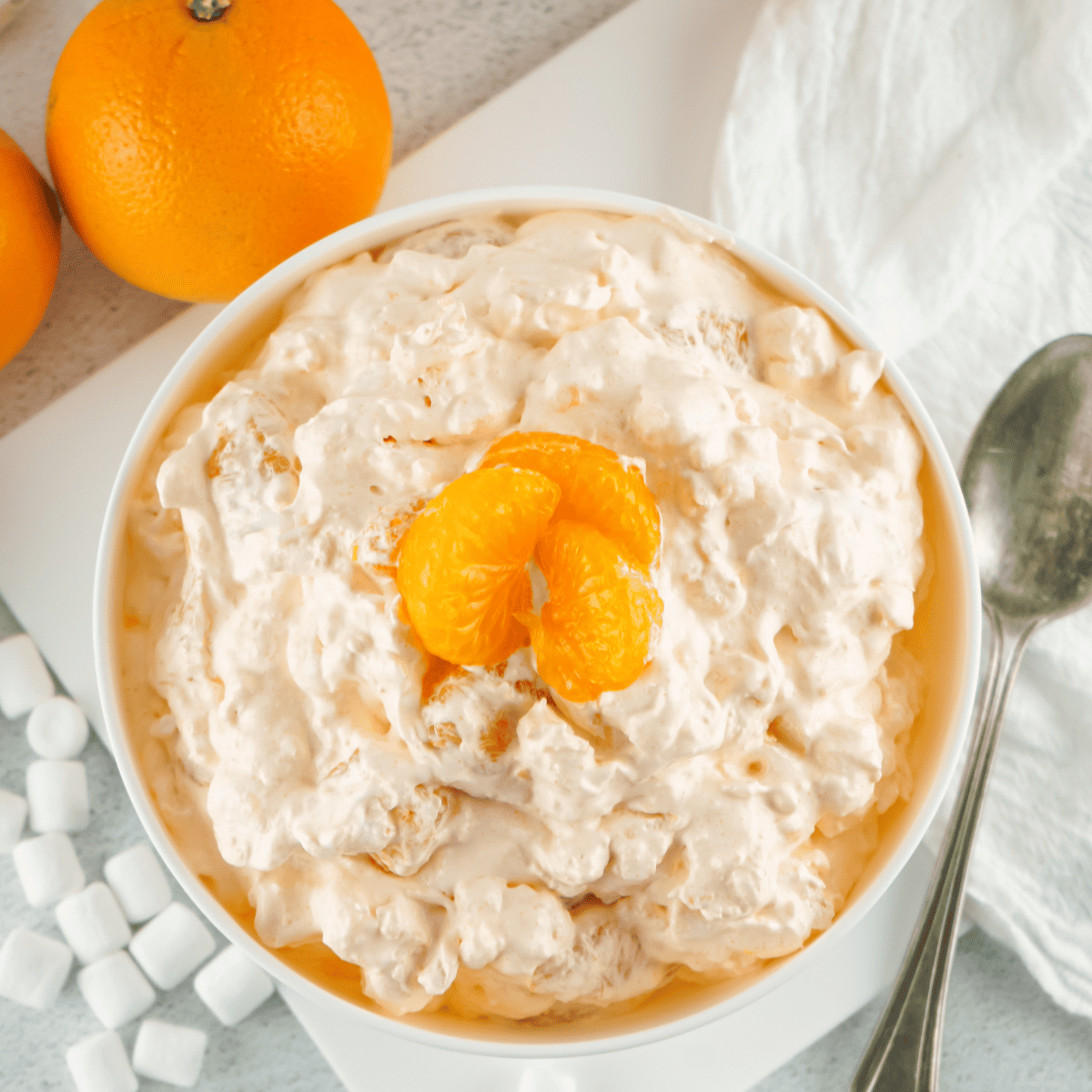 MY favorite Ambrosia salad is an Orange fluff salad is a fluffy, creamy bowl of goodness with a burst of tangy orange flavor. It's a classic combination of whipped cream, zesty orange, and a hint of tropical sweetness. This vintage treat has been loved by families for generations, and you can whip it up in no time.