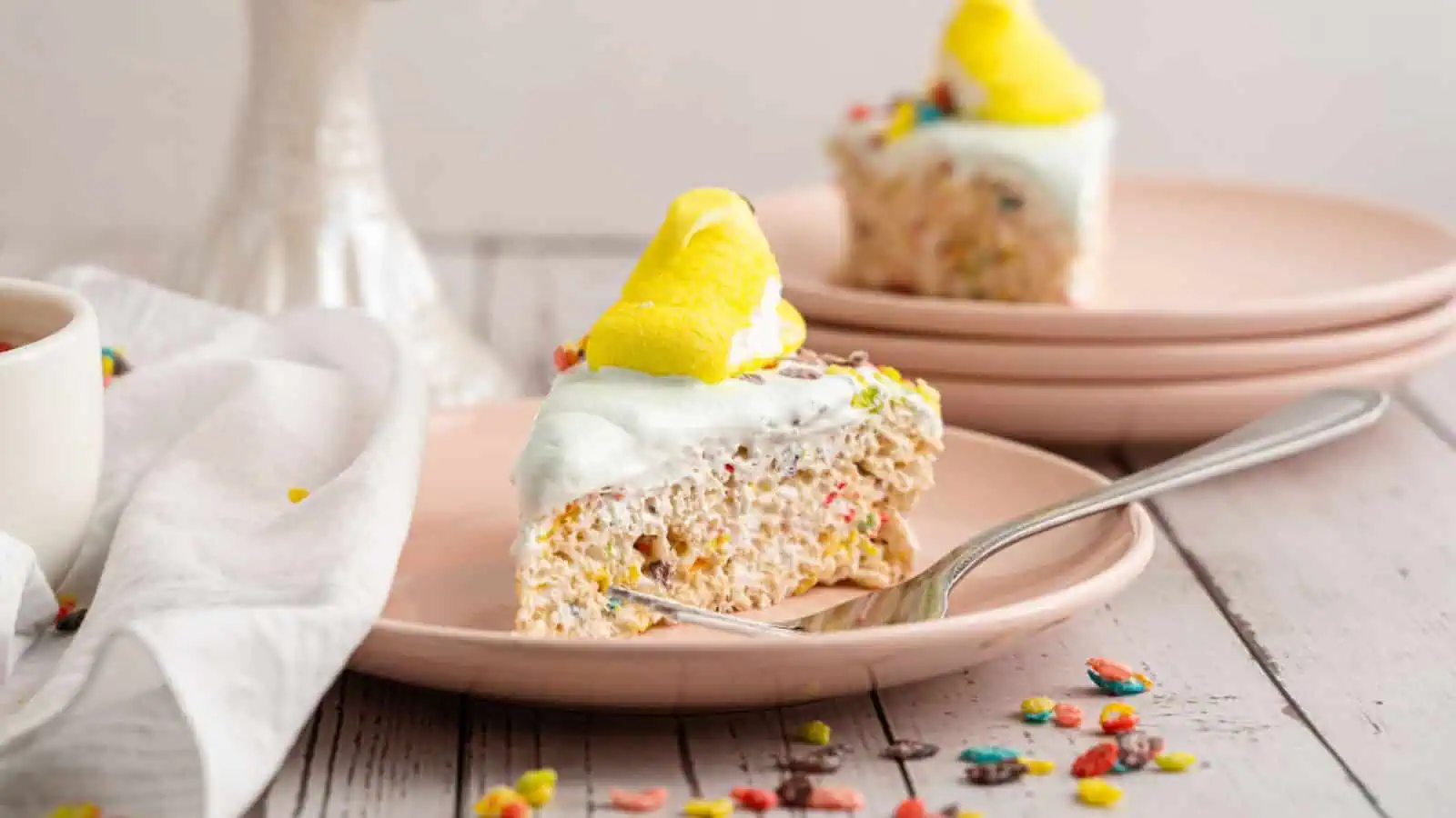 Easter Rice Krispie Cake Recipe stacks the classic cereal treat into cake form because why not? With layers of pastel cereal and Peeps on parade, itโs a solid choice for Easter dessert emergencies.