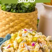 This pickle pasta salad is so good, if I'm not serving it as a side dish, I'm pairing it with crackers as a savory snack or enjoying it by the spoonful straight from the bowl!