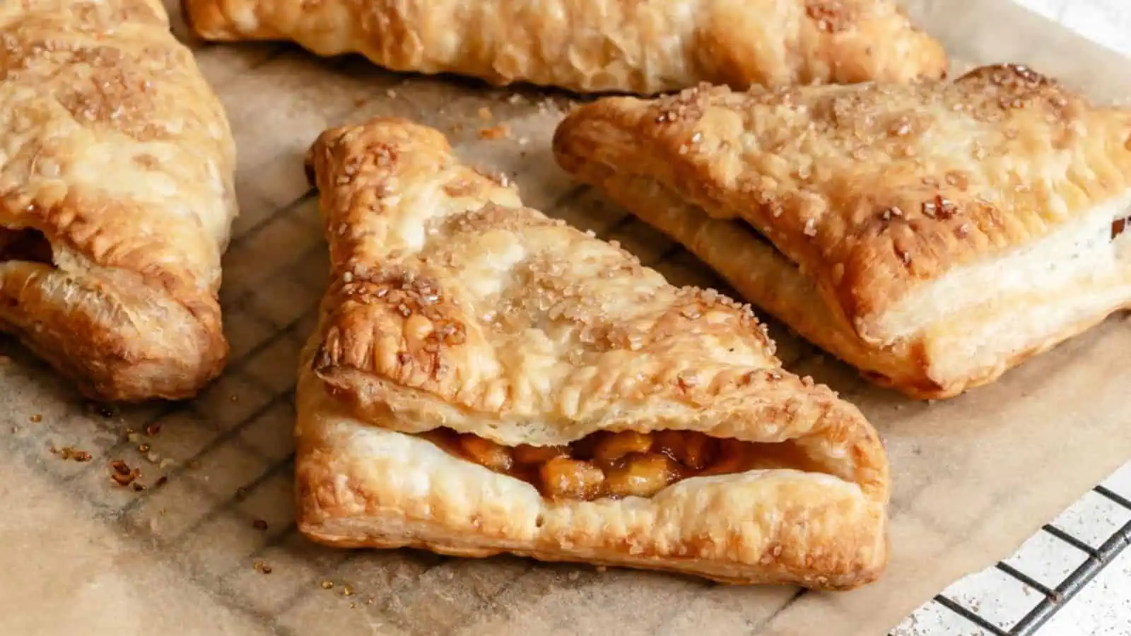 These turnovers combine tart cherry filling with buttery pastry and a vanilla glaze. Theyโre sweet, but not too rich. You can serve them for breakfast or dessert. Since they use puff pastry, theyโre also super quick to bake.