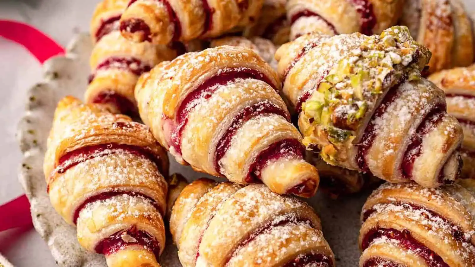 These croissants are made with pre-rolled puff pastry and raspberry jam. They have a crisp outer layer and a soft inside with a swirl of fruit. This is one of the easiest sweet puff pastry recipes to pull together. The vegan version doesnโt lose any texture or flavor.