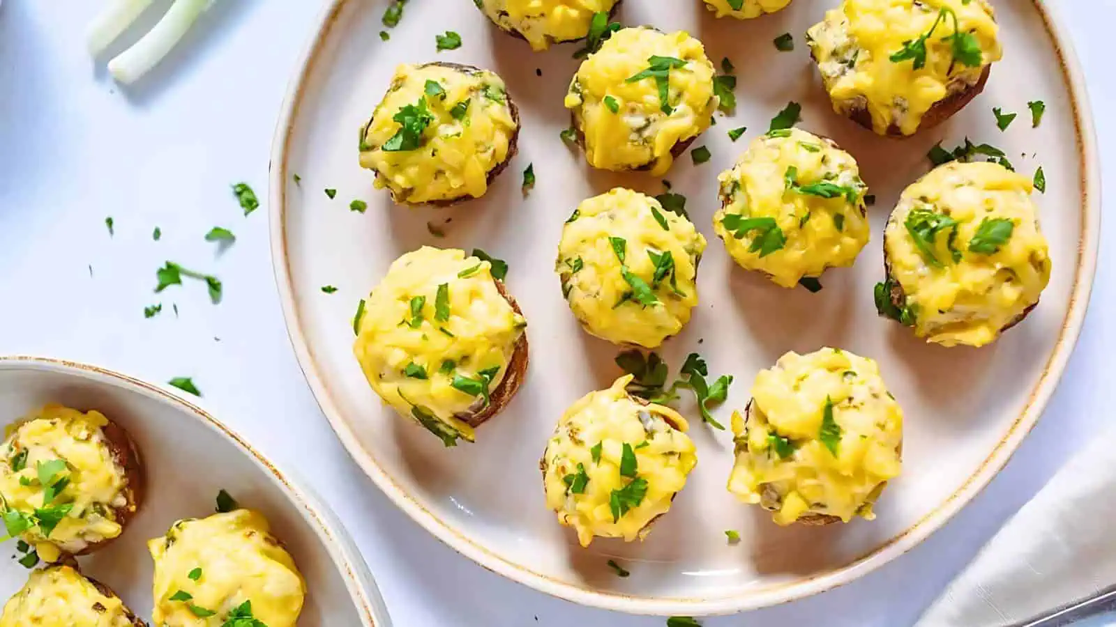 Vegan Stuffed Mushrooms are a great selection for quick and easy finger foods. Filled with dairy-free cream cheese and herbs, theyโre a tasty and satisfying option for any occasion, whether as a starter or a main dish.