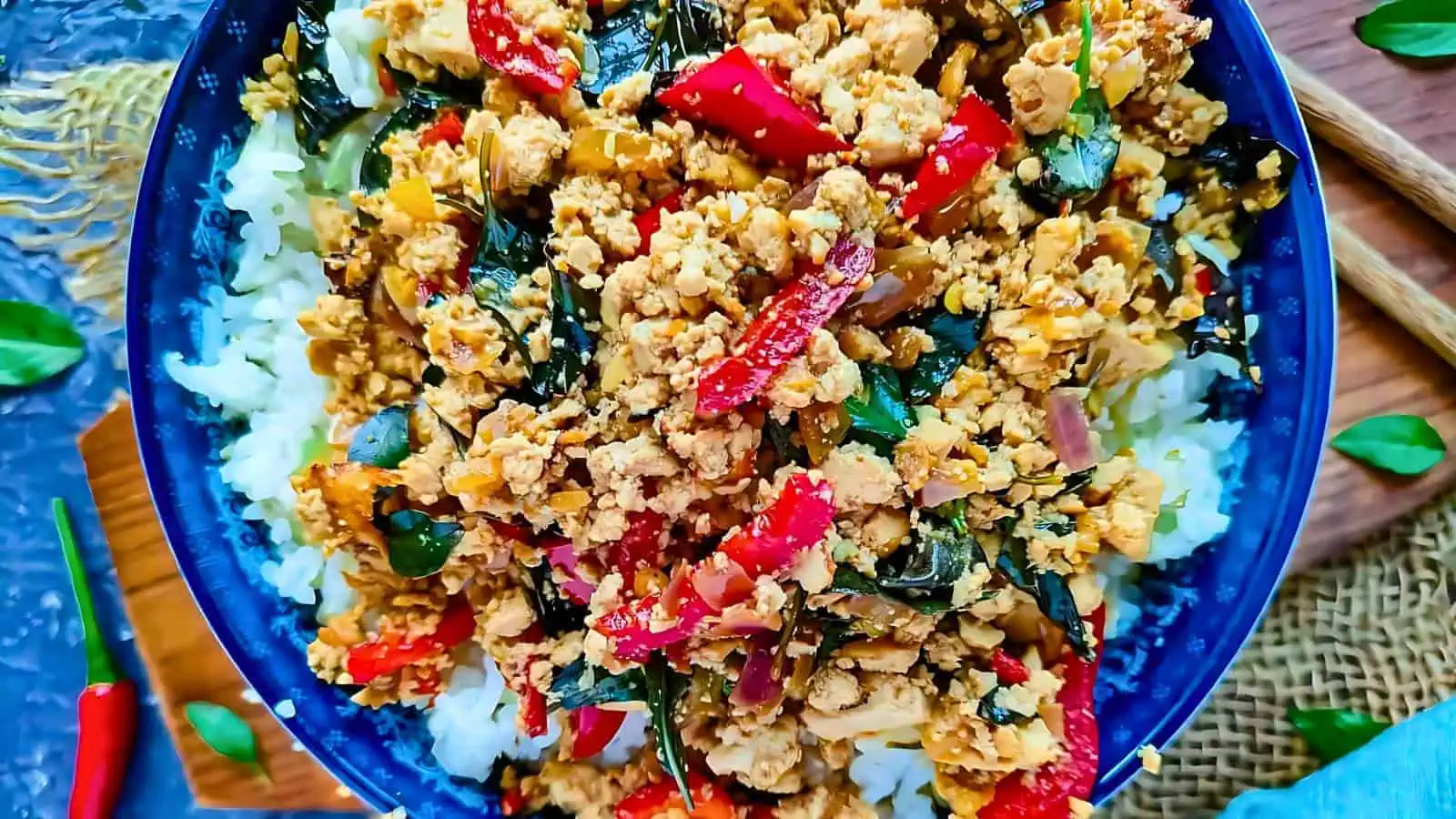 Thai Basil Tofu Stir Fry Recipe is ideal for recipes using fresh herbs, showcasing Thai basil in a savory dish. The fragrant basil adds a unique touch to the tofu and vegetables, making this stir-fry a quick and flavorful dinner option.